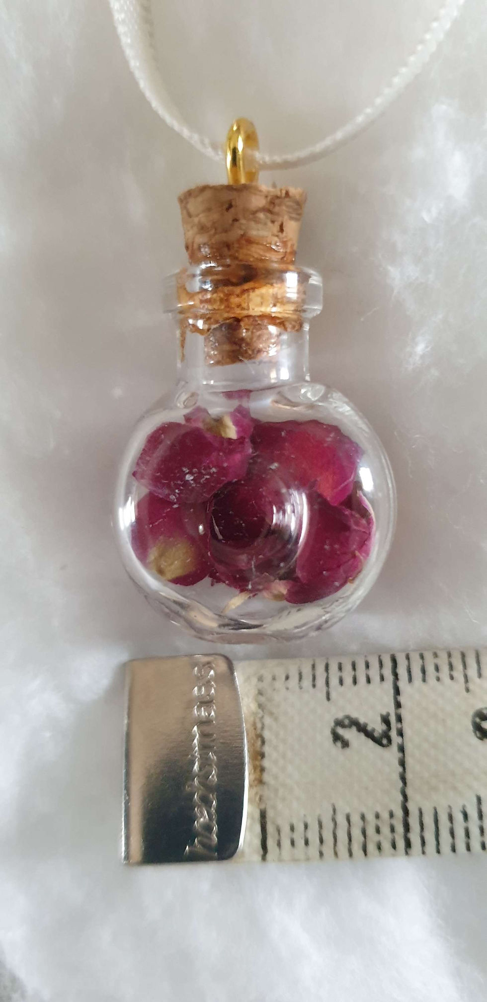 Pendentif Bouteille avec pétales de rose